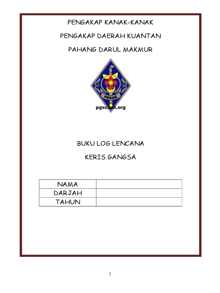 Semasa Ujian Pentarafan Pengakap Raja buku log peserta akan diperiksa oleh Lembaga Pentaraf Pengakap Raja Negeri untuk melihat sejarah serta penglibatan peserta dalam. Template cover buku log pengakap 1 pdf. Kumpulan Latihan Malaysia 10.